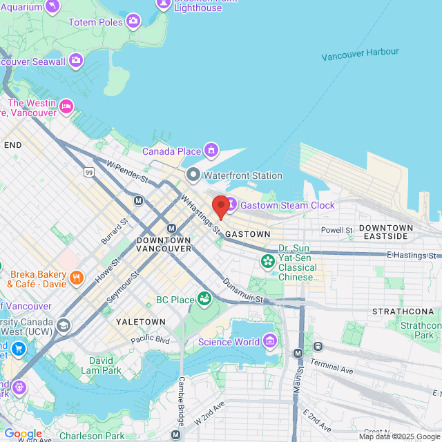 Located 2 blocks east of Waterfront Station. Pay parking on street, or in parking across the street on West Cordova. Buzzer Code 0807 (listed as 'Inside Space')